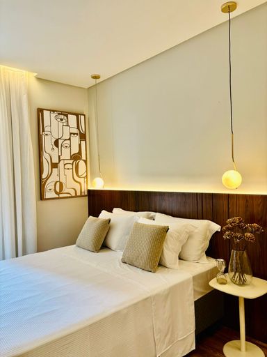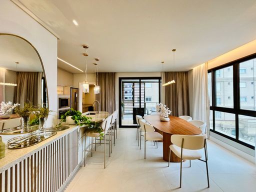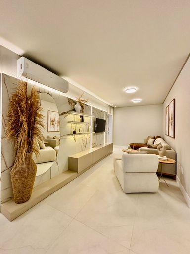 São 3 suítes, 125 m2, living integrado e lazer completo no rooftop com piscina, academia e jacuzzi.